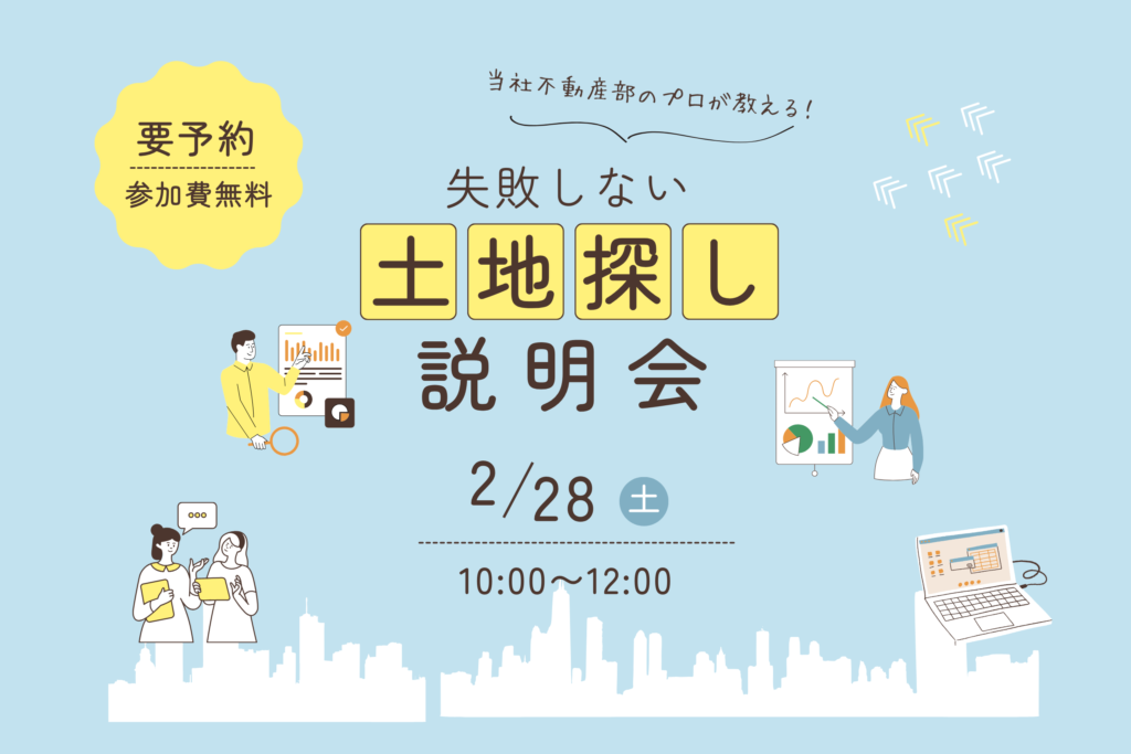 - 2/28(土) 当社不動産部のプロが教える 失敗しない~土地探し説明会~
