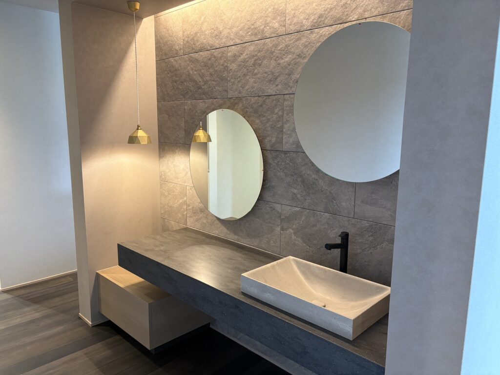 まあるいLED照明付きのミラーがおしゃれ👏🏻✨