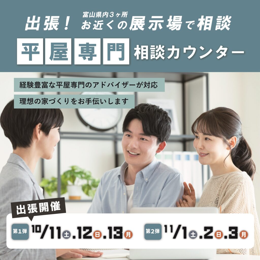 平屋専門相談カウンターが3日間限定で、富山県内3か所へ出張します!
