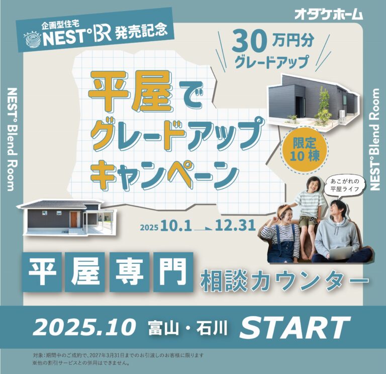 11/22(土)~11/24(祝月)出張!平屋専門相談カウンター(富山県内選べる3会場) – キャンペーン(来場予約なし)|富山・石川の新築・注文住宅ならオダケホーム
