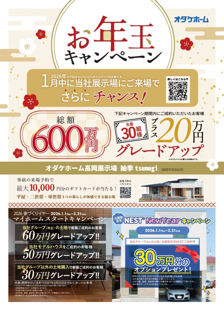 - 【オダケホーム】ご来場で嬉しいお年玉キャンペーン開催!